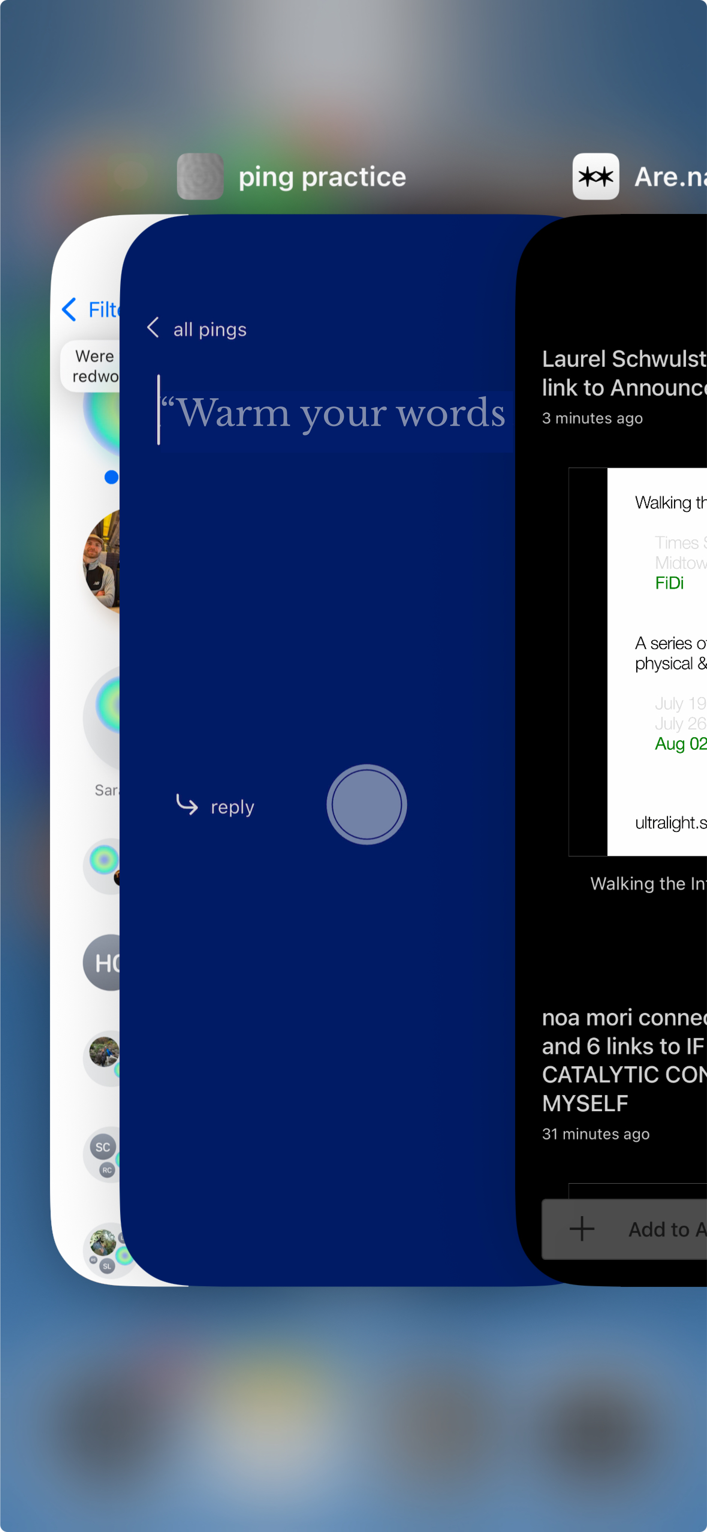 * I think also retaining this history/log will make the act of setting a new ping in capture feel even more lightweight (as it ought to be)